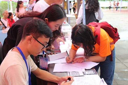 迎新期间,公司老师与员工志愿者热心接待每位新生。同学们一下车,志愿者就帮着提行李,然后带领他们到相应的服务点,完成登记、手续办理、领取住宿用品等相关流程。整个过程顺畅无比,同学们还在安置妥当之后与志愿者们开心交谈,大家乐此不彼。迎新服务点同时设有家长休息区,为家长们提供必要的服务。