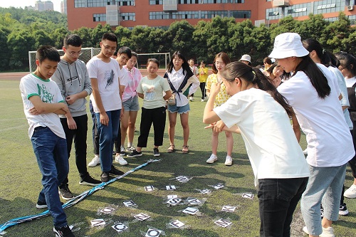 金秋九月,丹桂飘香,一首激情澎湃的《我和我的祖国》拉开了本次活动的序幕。紧接着便是激动人心、韵味十足的游戏环节了。此次活动设有七个游戏节目,既有考验大家对祖国历史及巨大成就的熟知程度的“重走七十年”与“中华文化库”,又有锻炼大家身体素质的“争锋岁月”,而“与‘十’俱进”又以踢毽子的形式仿佛让同学们回到了小时候……同学们六人一组,兴趣盎然,争分夺秒,最终根据比赛成绩获得相应的奖励。活动结束后,大家一起合影留念。 此外还有“祖国母亲,我想对您说”的征文活动,同学们可通过诗歌或散文的方式把自己想对祖国说的话写出来给大家分享。