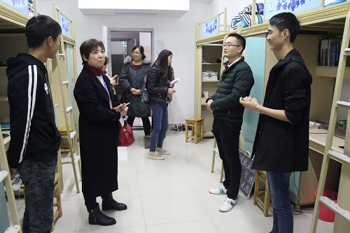 唐书记带队进入每一间寝室,了解寝室的安全情况之后,告诉同学们要时刻注意消防安全,不要使用大功率电器,要养成随手关电、节约用水、用电的好习惯。同时也了解了同学们的学习、生活情况,鼓励他们勤奋学习,愉快生活。此外,领导们还对公司员工宿舍环境进行了评价,表扬了一些环境优美的寝室,由此激发了同学们对寝室文化的重视。