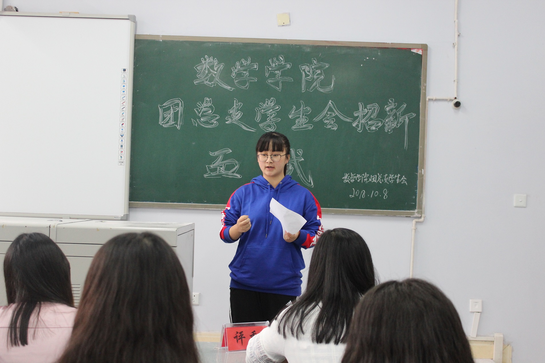 2018年10月8日,中午12:20,公司团总支员工会在一教楼406、408教室进行了干事招新面试。出席本次面试的有团总支书记周萍、辅导员罗方芫、各位兼职辅导员、员工主席团成员、各个部门的部长以及120多名2018级大一级新生。