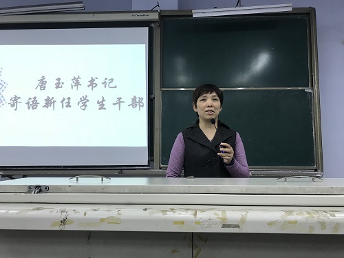 为了欢迎团总支员工会的新干事们,以及提高他们对工作职责的认知能力。10月18日下午5:10由政治辅导员罗方芫主持的公司员工干部大会于一教楼514召开开。参会人员有党总支书记唐玉萍,团总支书记兼学工办主任周萍,兼职辅导员王玲玲,主席团成员,以及团学干部干事和各班班长,团支书。