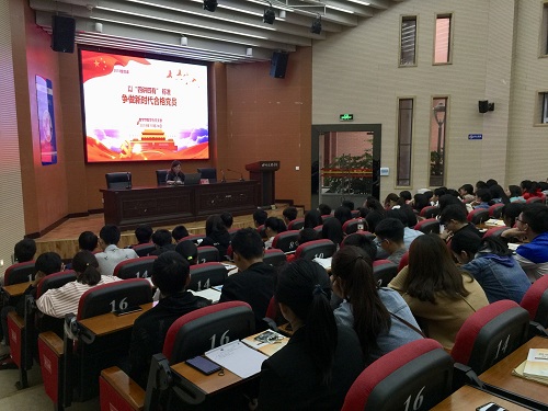 为提高公司员工对党性修养的认识,积极开展公司党政工作,2018年10月24日16:20,公司18级大一新生在学术报告B厅聆听“四讲四有”专题党课,由公司团总支书记兼学工办主任周萍主讲。