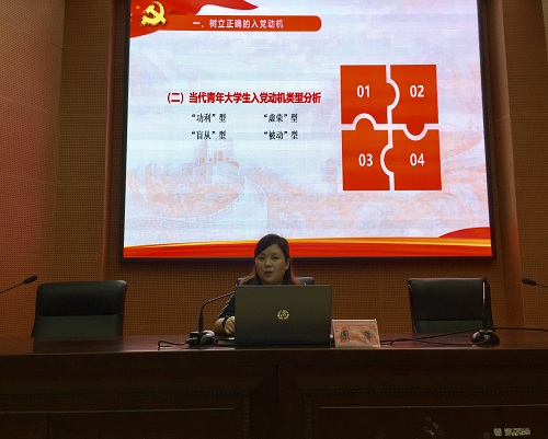 党课期间,周老师首先为同学们解释要树立入党动机的原因,让同学们对入党动机有正确的认识,不能有“功利”型,“虚荣”型,“盲从”型,“被动”型的入党动机出现。对于“四讲四有”主要内容,她希望入党的同学能按“四讲四有”为标准,严格要求自己,做到履行程序不变通,守好自己的底线,并维护好党员的光辉形象。同时,对于入党申请书的书写步骤和要求,周老师也给同学们作了详细说明。