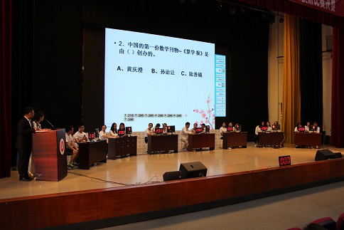 在主持人刘建宏、徐艳秋的宣布下,7个代表队正式开始了激烈的角逐。比赛分为:个人必答题、团队必答题、抢答题、观众环节、风险题、老师提问共六个环节。在比赛过程中,选手们不仅展现了随机应变的能力,体现了团队间的默契,更加展示了同学们的专业技能和素养。观众也纷纷积极参与,展现了他们深厚的数学文化积累以及对历史的了解。比赛现场气氛热情高涨,台下的观众努力为自己喜欢的的队伍加油。最终2016级“620-1”战队摘得桂冠。数学知识的奥妙与乐趣,让我们久久不能忘怀,生活的竞争和奋斗让我们永远不会止步。