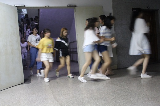 5月13日晚19:45,公司全体同学在莲湖校区一教学楼参与了防震减灾应急疏散演练。警报拉响,演练开始,所有同学按照规定路线有序下楼,同学们充分意识到当灾难真正来临时的临危不惧。活动中同学们统一号令,统一指挥,统一行动,整个演练过程气氛紧张、严肃。紧接着,同学们安全到达一教楼正门,并为2008年5·12地震全体遇难同胞默哀三分钟。本次撤离活动的总体要求是“ 安全、有序、快速” ,而首先要保证“安全、有序”。