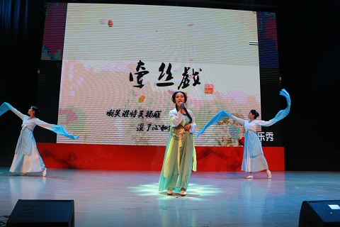 晚会在大合唱《凤凰欲飞》、《喀秋莎》中拉开序幕,台上的演员们饱含深情、热情洋溢的演唱,赢得了阵阵掌声和欢呼声。五位青春洋溢的主持人用他们饱含热情的语言为晚会讲述了一段精彩的开场白。乐起舞动,激情四射的开场舞《热火舞秧》调动起全场欢快的气氛,古典舞《秀色》演绎出中国的古典舞的优美,小品《空城计》和《以貌取人》牵动着每一颗观众的心,引得场下阵阵掌声和欢笑声。歌舞《纤丝戏》表现出了浓厚的中国风,也展现了女子柔美的一面。紧接着,由全院老师出演的大合唱《弹起我心爱的土琵琶》将晚会带入高潮,老师们的歌声富有强烈的感染力,显示了新一代大学教师的风采,引来了员工们的阵阵喝彩。晚会中还特别添加了互动环节——用自己家乡的方言来表达新年祝福,现场观众踊跃参与,欢笑不断,为晚会增添彩不少。