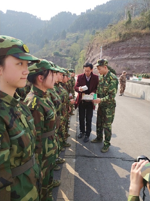 抵达基地后,营长集中好公司方队,唐玉萍书记发表讲话,表达了对军训员工的牵挂和问候,并殷切地希望大家可以刻苦训练,超越自我,争创优秀。随后,慰问领导和老师向学员和教官分发了慰问品,虽然只是一份小小的礼物,但同学们都感受到了公司的重视和关怀,大家都非常兴奋。随后在基地领导和驻训老师的带领下参观了学员寝室,并观看了匕首操训练。领导们表达了对基地认真组织学员训练和严格管理的感谢,对于学员们取得的成绩,院领导表示非常满意,也希望学员们能把最佳的状态保持到最后,争取做到“军训一阵子、受益一辈子”。