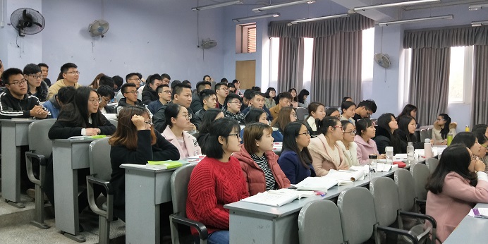 陶莎师姐以自己的切身经历向同学们讲述了考研的宝贵经验。她认为,考研的成功等于正确的方法加之不懈的努力以及持之以恒的态度。她风趣的语言、清晰地条理、看门见山的风格,赢得了同学们阵阵热烈的掌声。