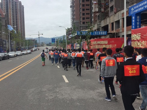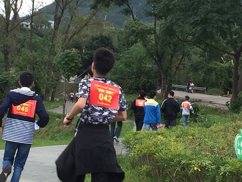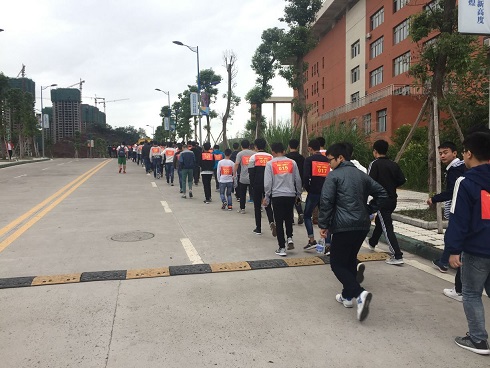 上午8点志愿服务的女生出发,就各路线岗位做好志愿服务的准备工作。8:30分,全体男生齐聚音乐广场,各班负责人以年级为单位对所有好男儿进行分号排序,整装待发的气势甚是浩大。9点整我们从公司西门出发,信心满满地迈出第一步,这一场户外长跑活动赢得许多路人的观看。时间随着运动员的步伐一分一秒的过去,周萍老师和罗方芫老师紧跟运动员的后面,为他们呐喊助威,无不是给运动员又添一份动力,一份向前冲的狠劲。经过每个路口,服务的女同学为好男儿指引道路,提醒他们注意安全。9点25分,大三一班的肖云同学一马当先,率先到达终点站,荣获第一,紧接着第二名,第三名……陆续抵达。6公里,不到半小时就成功抵达终点的优秀成绩获得老师的一致好评,9点45分所有运动员全部集结完毕。