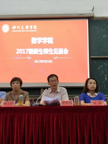 为增进师生交流,帮助新生尽快适应环境,公司于2017年9月18日上午10:30,在莲湖校区一教楼113室召开了2017级师生见面会。出席本次会议并在主席台就坐的领导和老师有:公司党总支书记、省级优秀教师唐玉萍副教授、院副经理罗肖强(主持工作)副教授、院办公室主任苟格副教授、院数学教研室主任胡蓉副教授、院学工办主任兼团总支书记周萍、院教学秘书高晶。2017级班主任和全体员工参会。会议由周萍主持。