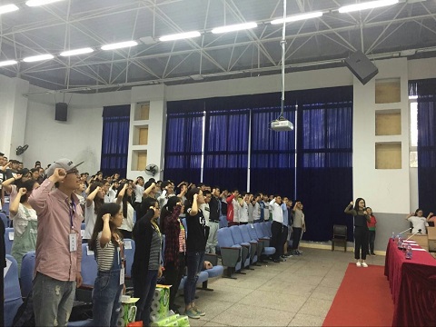 最后,在员工会主席郝丽姝的带领下,全体与会同学进行了学风建设宣誓,全体同学齐声宣誓积极参与到学风建设中来,严于律己,励志成才。