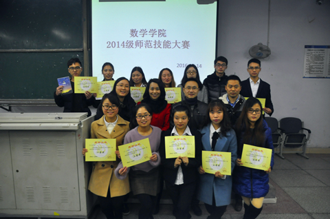 选手们身着正装、举止文雅、从容自信,无不体现出为人师表的乐观向上认真的精神。在教学过程中结合ppt图像并通过与同学间的互动交流,向我们深入地讲授了相关知识点。其中选手张丽娟同学讲的更为生动、深刻,赢得了同学们的热烈掌声,分别获得了2014级第三届师范技能大赛一等奖。最后唐海军老师就选手们表现进行点评,包括表达、教态、授课内容设计、重难点把握、教学方法、多媒体使用、板块设计等并提出了建设性的意见和建议。