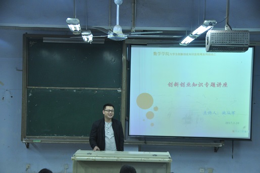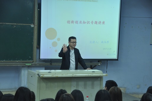 3月26日晚7点,公司在莲湖校区一教学楼412教室开展了创新创业知识专题讲座。主讲人是太阳成集团tyc151cc2015届的优秀毕业生施从军,公司办公室主任苟格老师、辅导员罗芳芫老师及大一大二大三全体同学参加了此次讲座,由学工办主任周萍老师主持。