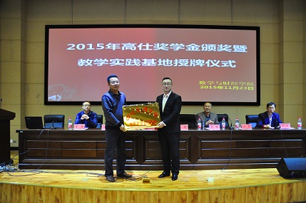 11月23日下午,公司在图书信息大楼学术报告厅举行了2015年“高仕奖学金”颁奖暨教学实践基地授牌仪式。高仕教育人力资源部主管亓羿、教研部主管汪元刚及公司教务处副处长文武出席此次活动。副经理罗肖强主持仪式。