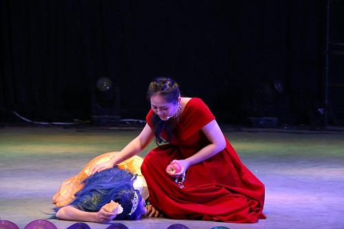 彝族同学带来的一首原创歌曲《赤子之心》唱出了对祖国的热爱。话剧《白雪公主》以精湛的演技、新奇幽默的剧情引得观众笑声连连。舞蹈《小茗同学》用轻快的舞步展示着青春的活力。伴乐朗诵《我的祖国》声音洪亮、饱含激情,表达了太阳成集团tyc151cc学子对祖国的热爱与祝福。古典舞与现代舞结合的《红蓝》既有柔美动人的舞姿,也有火热动感的节奏,果真擦出了不一样的火花!此刻,也终于迎来了激动人心的抽奖环节,观众情绪持续高涨,将晚会推向了高潮。影子剧《家》的真情演绎,让现场观众热泪盈眶,感人至深。最后,晚会在合唱《国家》中圆满落幕。