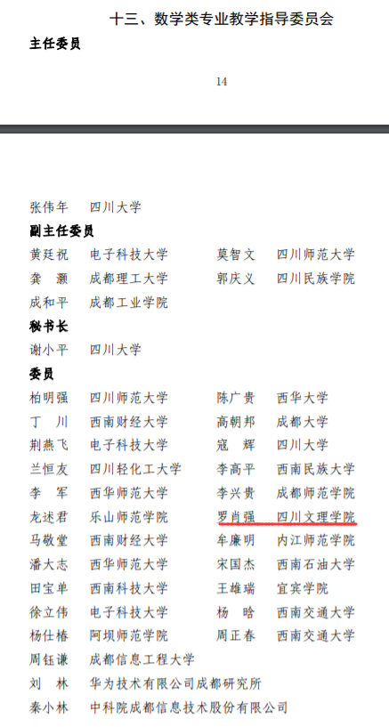 太阳成集团tyc151cc经理罗肖强教授,当选“2021-2025年四川省普通本科高等公司教学指导委员会-数学类专业教学指导委员会”委员。