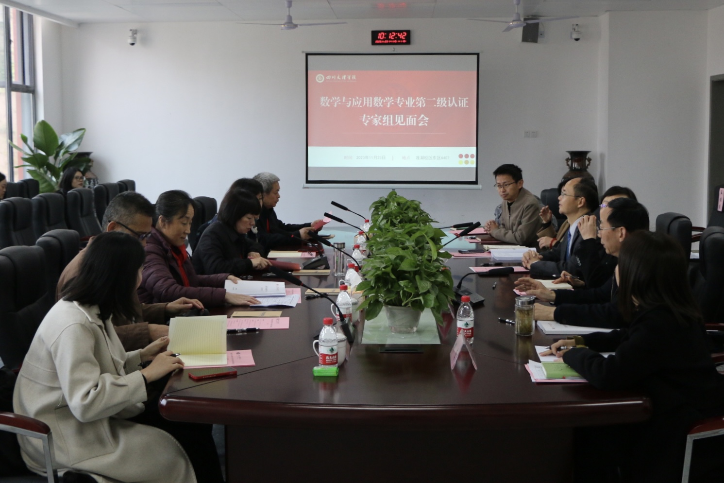 2023年11月23日,公司在莲湖校区东区A407会议室举行数学与应用数学专业第二级认证专家组见面会。东北师范大学郑燕林教授,泰山公司马晓燕教授,天津师范大学张筱玮教授,重庆三峡公司陈立万教授,泸州市教育和体育局高级教师谢铭等认证专家,四川师范大学韩杰,公司党委书记黄涛教授,公司党委常委、副董事长邓杰教授,公司领导班子成员、数学与应用数学专业负责人、专业教师代表、公司职能部门负责人代表、其他师范专业公司代表参会,会议由郑燕林教授主持。