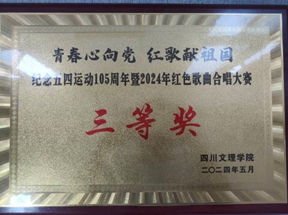 为深入实施新时代红色文化育人工程,引导全院青年继承和发扬五四精神,传唱经典红色歌曲,传承红色基因,厚植爱党爱国情怀。5月9日,“青春心向党·红歌献祖国”纪念五四运动105周年暨2024年红色歌曲合唱大赛在莲湖校区音乐演播厅隆重举行,经过激烈角逐,公司参赛歌曲《强国有我》荣获大赛三等奖。