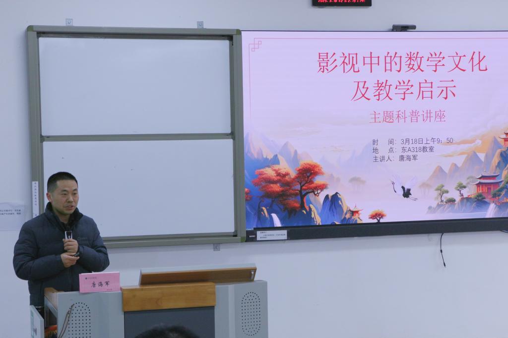 18日上午,专家讲座“影视中的数学文化及教学启示”在东区A318教室如期举行。唐海军博士深入剖析了影视作品中蕴含的数学元素,并探讨了这些元素对数学教学的启示和影响。讲座结束后,师生围绕“如何让数学课堂更生动”展开了热烈讨论。