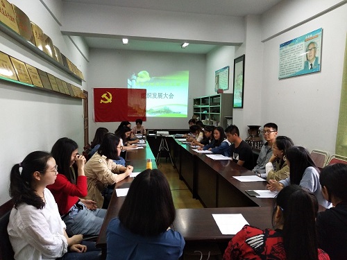 5月24日下午4:20分,太阳成集团tyc151cc员工党支部在一教楼405会议室,召开了本期组织发展大会。参会的有公司党总支书记唐玉萍老师、员工党支部全体委员、班主任教师党员及全体员工党员同志。