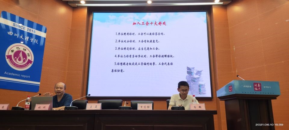 根据公司工会工作安排,公司分工会在6月10日下午在公司学术报告厅B厅举行了“入工会、维权益、促就业”工会知识宣讲活动。活动由公司分工会主席刘浏主讲,公司党总支副书记苟格主持。