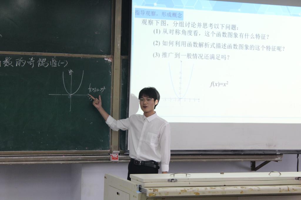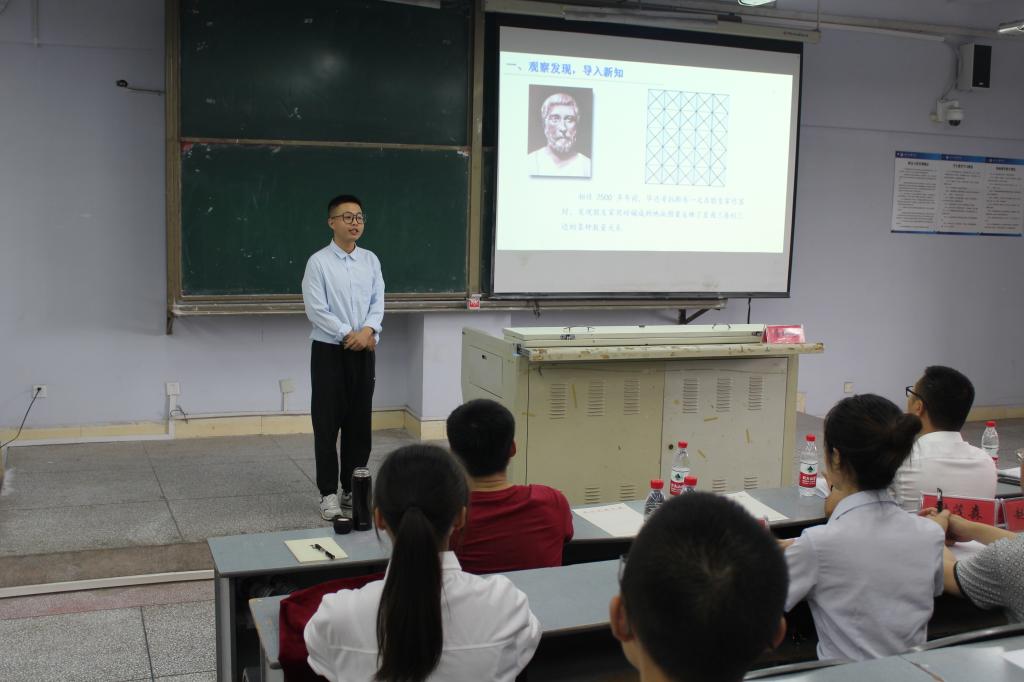 讲课比赛共分说课、模拟授课和现场回答三个环节。说课环节,选手语言表达清晰、教学目标明确、教学重难点突出;模拟授课环节,选手们板书整洁、讲授生动形象;现场回答环节,选手从容回答评委的各种问题,展现了师范生的认真、严谨精神风貌。最后,邓厚华以清晰的思路、流畅自然的讲课脱颖而出,获得一等奖,邓婷、罗光婷获得二等奖,唐映皓、蔡胜、张开宇获得三等奖。