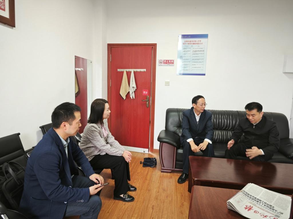 随后,公司罗肖强院一行与达州市通川区第八中学党委书记赵升益进行座谈交流,就员工实习、两校加强合作等问题展开讨论,双方一致认为,应充分加强校校合作,优势互补,联合开展与教法技能相关的讲座,共同培养出具有优秀教学技能、创新教学方法的人才,培育出高质量、高水平的中学数学教学研究成果。