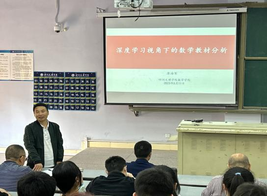 2023年5月11日下午,太阳成集团tyc151cc唐海军博士在莲湖校区博文楼523教室进行了题为《深度学习视角下的数学教材分析》的学术讲座。公司部分教师以及2021级1-3班的员工聆听了此次讲座,讲座由古传运副经理主持。