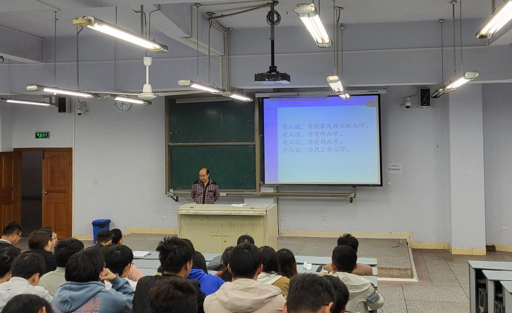 首先,刘博士结合个人求学经历和求学感受,通过“何而学,如何学”、“你的人生规划是什么”等问题,强调了学习的重要性,希望同学们能够在大学里树立人生目标和作好人生规划。随后,刘博士以“A note on even character degrees of finite groups”为题,介绍了他近期的工作,刘博士解决了Berkovich在教材中提出的问题——群的偶数特征标次数为素数方幂时,群有怎样的结构。特别地,当群非可解时,群的结构为PSL(2,q).d与一个非交换正规子群的直积(这里q是2的m次方,d是m的奇数因子)。 最后,刘博士以诗句“路漫漫其修远兮,吾将上下而求索”结束报告,希望同学们能以百折不挠的精神去追求和探索数学中的奥秘。