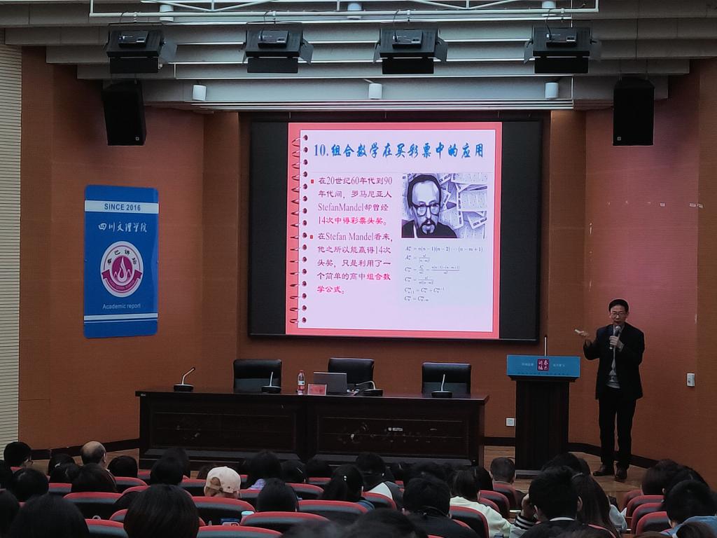 罗肖强教授首先从几个数学上常见的趣味例子开始讲析,激起了大家对本次讲座的期待。随后,罗教授从数学实力与国家综合实力、数学的发展与工业革命、数学对个人成长、数学对科学重要性做了详实概述和深度的阐释。其次,他例举了多个神奇的数学案例,既有看得见摸得着的生活数学元素,又有科学前沿的世界级数学难题在推动现代社会生产力的影子;既有事关数学在国防安全的功能,又有普通人的情感思想素材,讲解诙谐高雅,朴实大方,师生们听得津津乐道。最后,罗教授跟大家分享了大学数学的专业课程的作用,特别提到在生活生产中起桥梁作用的数学课程——数学建模,他还讲到数学建模如何在川东北经济发展和乡村振兴中发挥作用。