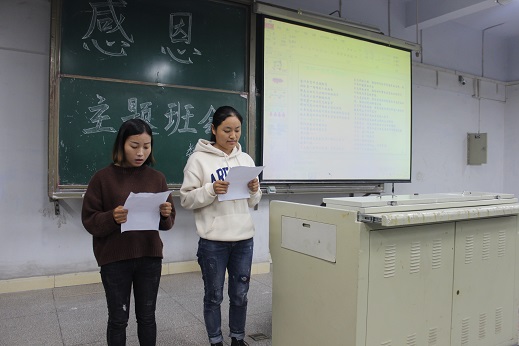 感恩是一种心态,犹如口渴时喝一杯绿茶,甘甜解渴,清香沁肺。感恩是一种生活态度,一种善于发现美并欣赏美的道德情操。诗朗诵《常怀一颗感恩的心》告诉我们不要责备上天的坎坷与命运的曲折,要体验快乐,在爱的阳光里成长。2015级代表李月秋以自己从颓废到努力的经历激励同学要积极进取,感恩身边的朋友、老师,感恩生活中每一个改变自己的机会。接着全体员工齐唱《感恩的心》,“感恩的心,感谢命运……”在这优美的歌声中感谢老师的付出、感谢同学的相互支持……