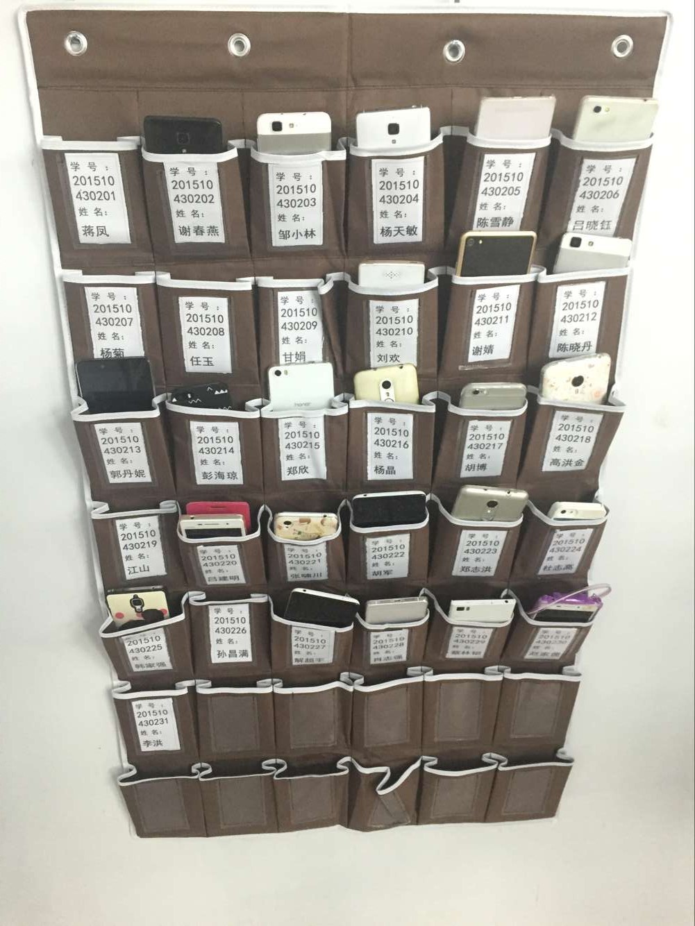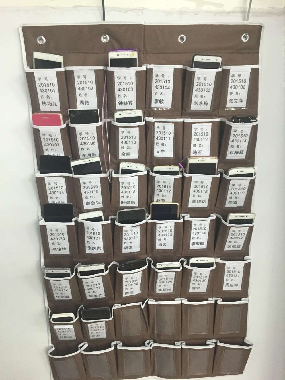 随着智能手机普及,大学课堂上“低头族”群体日益庞大,而为了让“低头族”抬起头,走进课堂,公司在本周要求全院23个非毕业班班级,在课堂配上了“手机收纳袋”。要求全院员工每次上课前,将手机放进收纳袋,课后再领回手机。