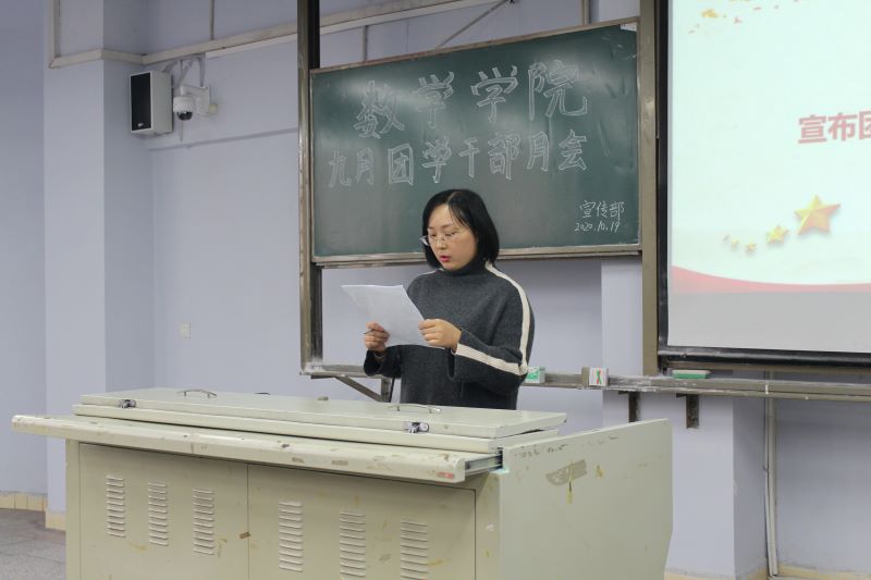 会议伊始,罗方芫老师宣布团学新干事名单,对他们表示祝贺的同时,也寄予了深切的希望。随后,新干事代表罗浪发言,他回望了选拔的过程,展望了部门生活。他表示将不忘初心,锻炼好自己,服务好同学。紧接着,主席团成员邓厚华和寇雨桐分别对九月团学工作作总结,对十月团学工作做安排,并分别提出了自己的意见和希望。最后,苟格副书记作总结发言。首先他对新同学的加入表示祝贺和欢迎。同时对全体干部提出了几点要求和希望,他指出各部门新成员应再学习、再适应、再提高。要团结协作,勠力同心。做到“大事讲原则,小事讲风格”真正做到工作、学习两不误。