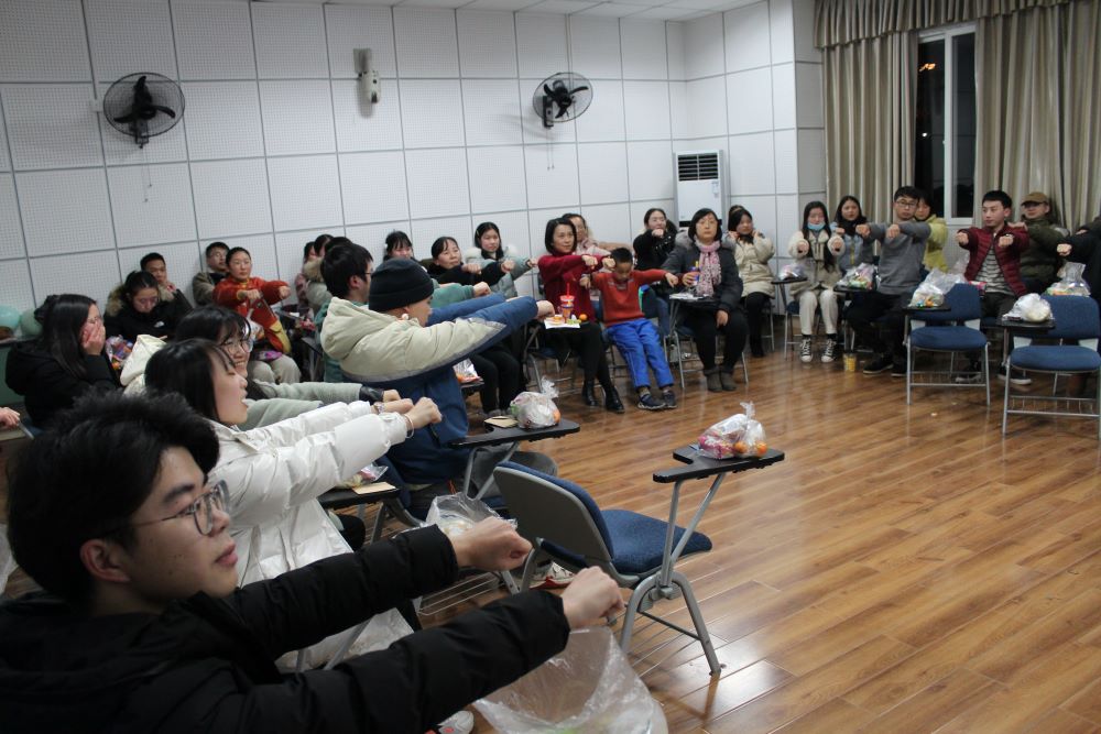 活动伊始,胡蓉老师为本次活动致辞。她指出了考研这条路不在于路的尽头是什么,而在于走考研这条路的整个过程,她还强调了坚持的重要性,考试途中一定不要放弃,2020年要像一名战士那样接受检验。讲话的最后她温馨地提示了考研同学的要及时准备相关证件合理安排好自己的作息时间。随后活动进入了交流环节,同学们向老师们自由地询问了关于考研的具体事项和注意事项等。紧接着在主持人的带领下进行了“抓鸭子”、“猜猜猜”等几个趣味游戏。在同学们愉悦身心的同时,也获得了丰厚的奖品。最后,在罗方芫老师的带领下同学们一起做了减压运动。
