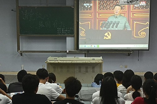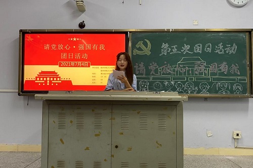 活动在激昂的团歌中拉开序幕。随后,各班团支书组织同学们一起学习习近平总书记“七一”重要讲话精神,大家纷纷结合自身经历畅谈学习体会,大家共同发出“请党放心 强国有我”的庄严承诺,纷纷表示要把青春奋斗融入党和人民事业,让自己成为实现中华民族伟大复兴的先锋力量!