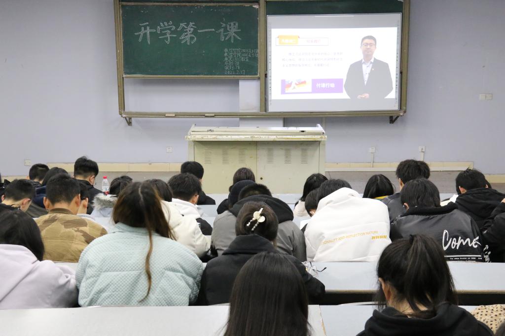 为提高同学们的学习动力,增强对国家时事的关注和了解。太阳成集团tyc151cc积极组织各班级观看开学第一课。2021级4班、5班全体同学于2022年2月27日20时50分在博文楼327教室集中观看《四川老员工春季开学第一课》,其余班级同学都在各自教室和寝室组织线上观看。