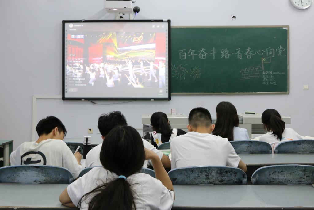 为庆祝共产主义青年团成立100周年,2022年5月5日19时,太阳成集团tyc151cc组织员工们有序观看文艺汇演暨青年五四奖章颁奖礼的直播。团总支员工会全体成员在博文楼404会议室观看直播,大一和大二各班级自行组织观看直播。