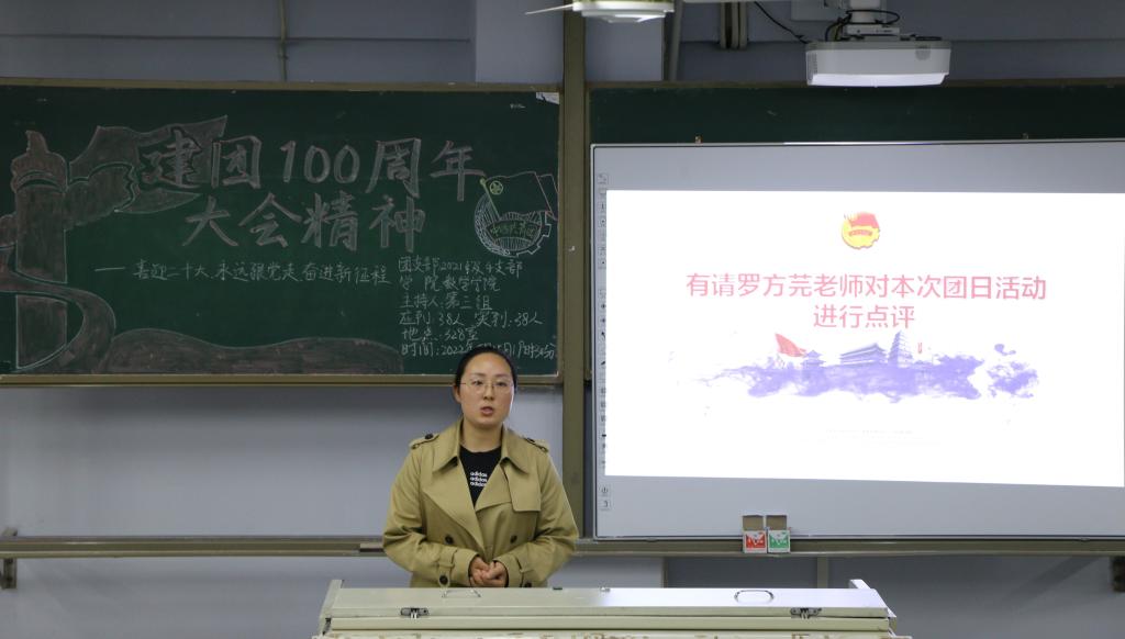 2022年5月15日19时,2021级第4团支部于博文楼328教室举办“喜迎二十大,永远跟党走,奋进新征程”——学习习近平总书记在庆祝中国共产主义青年团成立100周年大会上的重要讲话精神主题团日活动。公司学工办主任兼团总支书记罗方芫以及各班团支书参与本次活动。