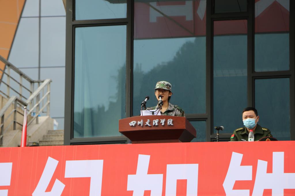 开训式上,公司2022级李新萍同学作为莲湖校区军训学员代表上台发言。作为一名初到文理的2022级新生,她说:“我们带着光荣与梦想,相聚川文理校园,在这片充满智慧与生机勃发的沃土上,开启我们人生新的航程。”面对即将到来的军训,她说:“军训有时,育人无期。‘天将降大任于斯人也,必先苦其心志,劳其筋骨。’身为文理学子、文理青年我们应当将艰难困苦、玉汝于成的文理精神,融入到我们的军训生活当中!”一番番的慷慨陈词,点燃全体同学的满腔热血!
