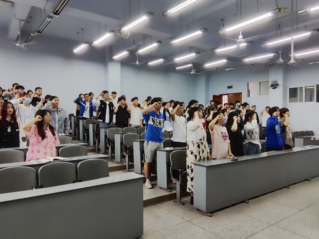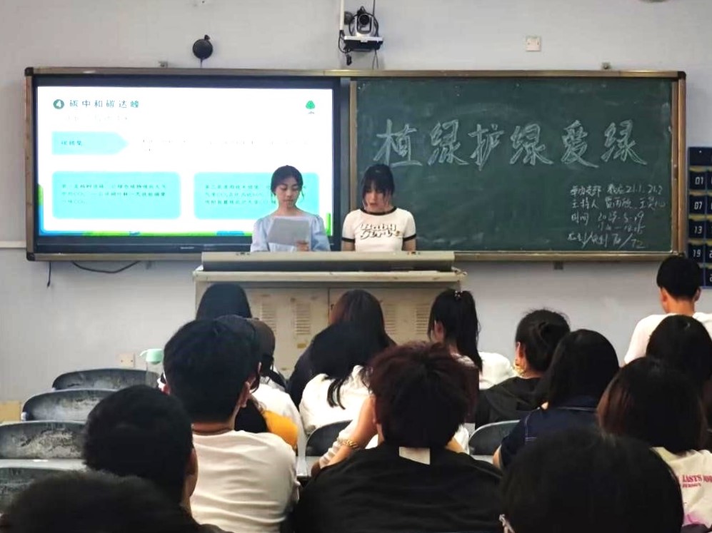 活动在激昂的团歌中拉开序幕。随后,各班团支书组织同学们一起学习“生态优先、绿色发展”之路,“五位一体”总体布局,人与自然和谐共生的基本方略。大家纷纷结合自身经历畅谈学习体会,大家共同发出“保护环境,人人有责”的庄严口号。在本次团日活动中,同学们相继学习了人与自然和谐共生,生态优先、绿色发展,生物多样性,以及碳中和碳达峰的相关知识,同时也深刻理解了爱护环境的重要性。会后,由主持人带领大家重温入团誓词。