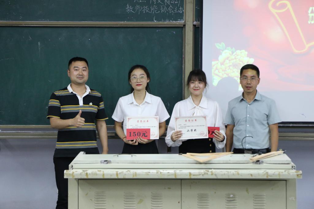 比赛分为即兴演讲(2分钟),说课(3分钟),模拟授课(10分钟),现场回答评委提问(2分钟)四个环节。参赛选手准备充分、教学过程设计合理、语言表达准确生动、教学方法十分新颖。选手们从容回答评委的提问,展现了师范生认真严谨的精神风貌。经过精彩且激烈的比赛,罗雨荣获一等奖,张攀攀、林建宏荣获二等奖,丁泽伟、罗媛宏、罗小欢荣获三等奖。