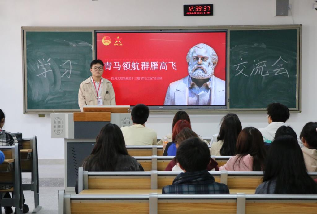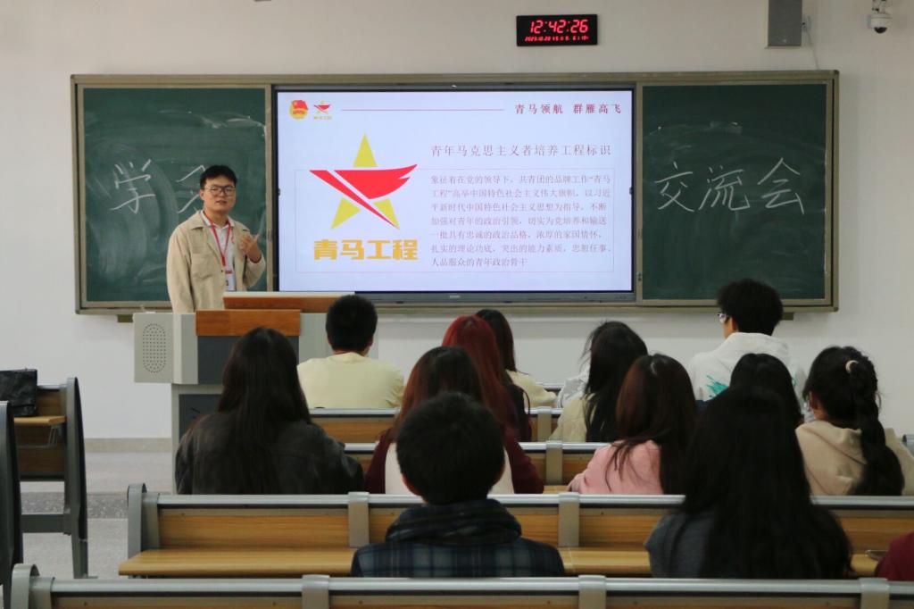 向自杰从党和国家领导人对青年的期望、青马工程的概述与发展历程、太阳成集团tyc151cc的青马工程培养体制、优秀学员的分享四个部分展开介绍。李佳佳从中国共产党与中国式现代化新道路、新时代新作为、学习的心得体会三个方面进行分享。向自杰鼓励大家:作为数院学子,不仅要学习书本知识,更要学习马克思主义理论知识,学习并传承中华优秀传统文化。追求进步是青年最宝贵的品质,是人民最殷切的期望,也是每一个青马人应当具备的品质。