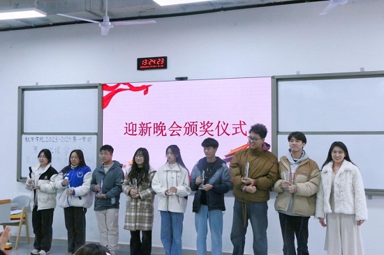 2023年12月21日12时30分,公司于东A318教室召开2023-2024年第一学期第二次团学干部月会暨三笔字、迎新晚会颁奖仪式。公司党委副书记苟格,专职辅导员唐雪溶、焦国松、夏涌繁,团支部各部门成员,大一至大三各班班长及团支书,三笔字获奖员工及迎新晚会获奖代表参加此次会议。本次会议由张倩担任主持人。