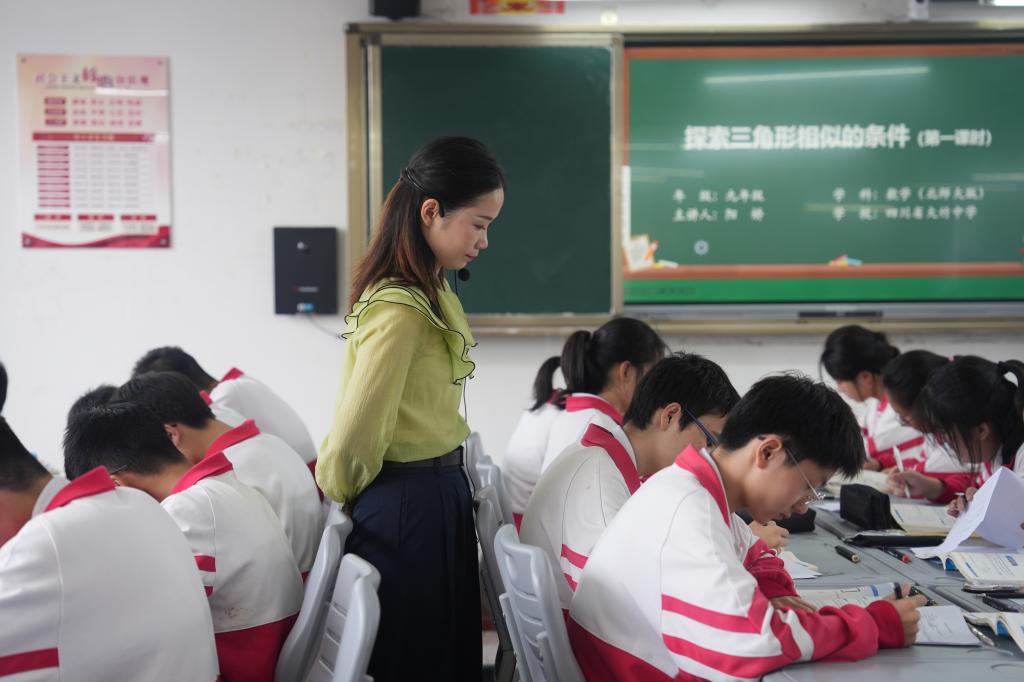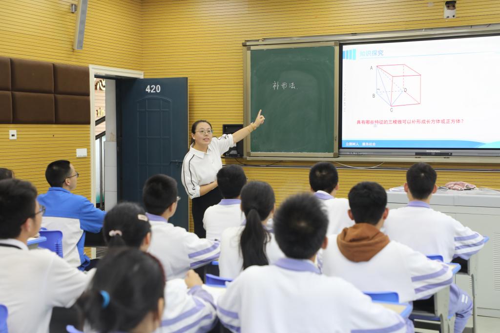 调研组来到大竹中学交流学习,受到大竹中学党委书记欧伦文、董事长胡开月等领导和老师们的热情接待。调研组观摩了大竹中学优秀青年教师杨玉娥老师的公开课《几何体的外接球》(高中)和阳娇老师的公开课《探究三角形相似的条件》(初中)。