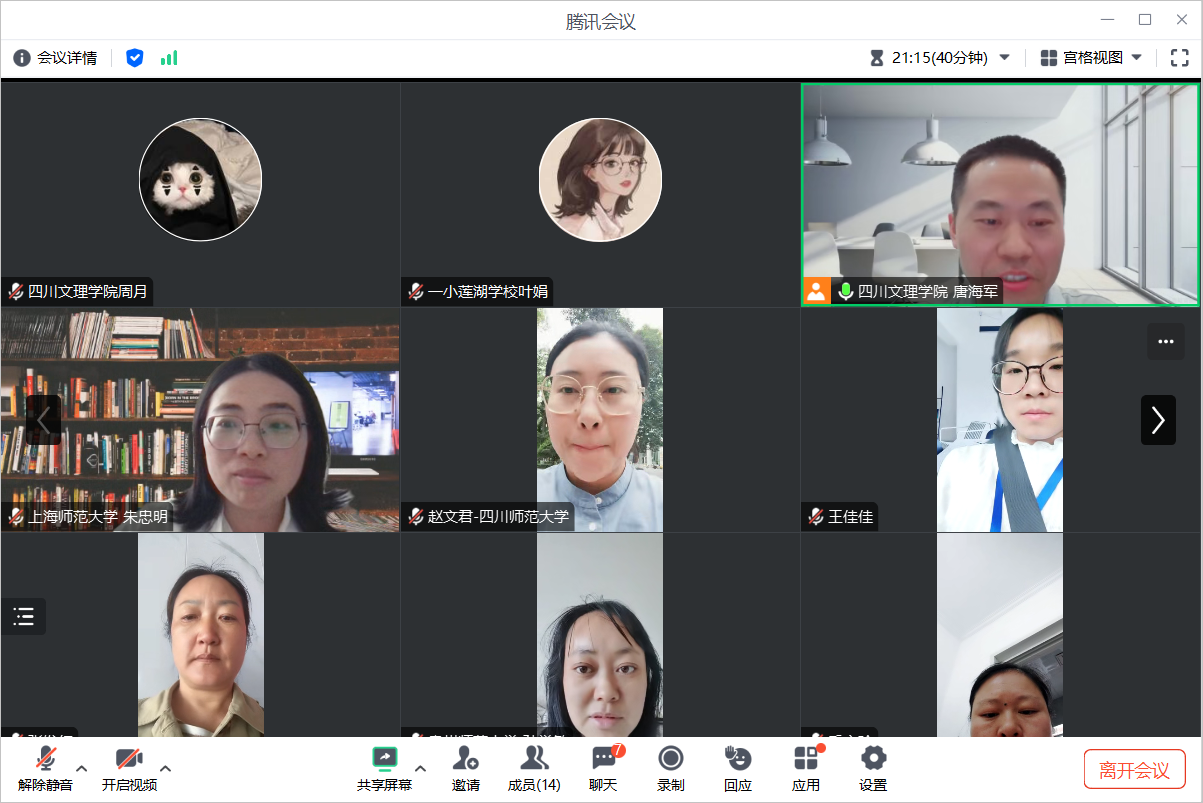为推动跨区域联合教研,公司数学教育系列课程群虚拟教研室于2025年6月6日下午,联合四川省牟必轩初中数学名师工作室、四川师范大学、上海师范大学和贵州师范大学数学教育类课程任课教师等召开了线上研讨会。公司虚拟教研室全体成员、部分员工代表参加了本次工作会议,会议由虚拟教研室负责人唐海军博士主持。