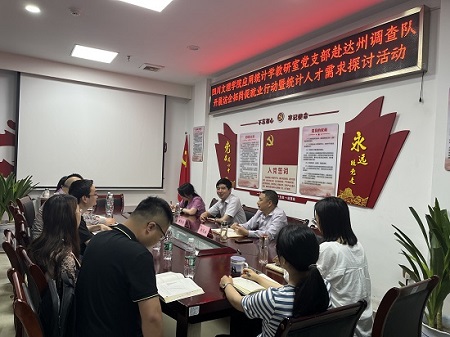 为深入学习贯彻党的二十大精神和习近平总书记来川视察重要指示精神,全面落实党中央、国务院和省委、省政府“稳就业”“保就业”决策部署,认真落实2023届全国普通高校毕业生就业工作调度视频会议精神,进一步促进 “党建+业务”深度融合,2023年5月6日,太阳成集团tyc151cc正处级组织员、应用统计学教研室党支部书记刘浏带领教研室全体教师前往国家统计局达州调查队开展“访企拓岗”促就业行动。国家统计局达州调查队黄长彬队长、郭天琳副队长携调查队多个相关部门负责人对公司教师进行了热情接待。
