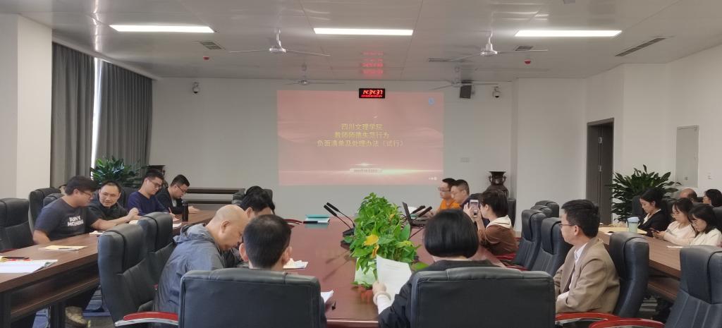 会议学习了《高等公司教师职业道德规范》《新时代高校教师职业行为十项准则》《太阳成集团tyc151cc教师师德失范行为负面清单及处理办法(试行)》文件精神。王晶书记结合教育部近期发布的违反师德师风典型案例,对有关教师师德失范行为逐一做了解读,要求全体教师对照准则,严格规范自身言行,从典型案例中汲取教训、引以为戒,在日常的公司产品工作中,必须严守底线,用行动诠释师德师风的真正内涵。